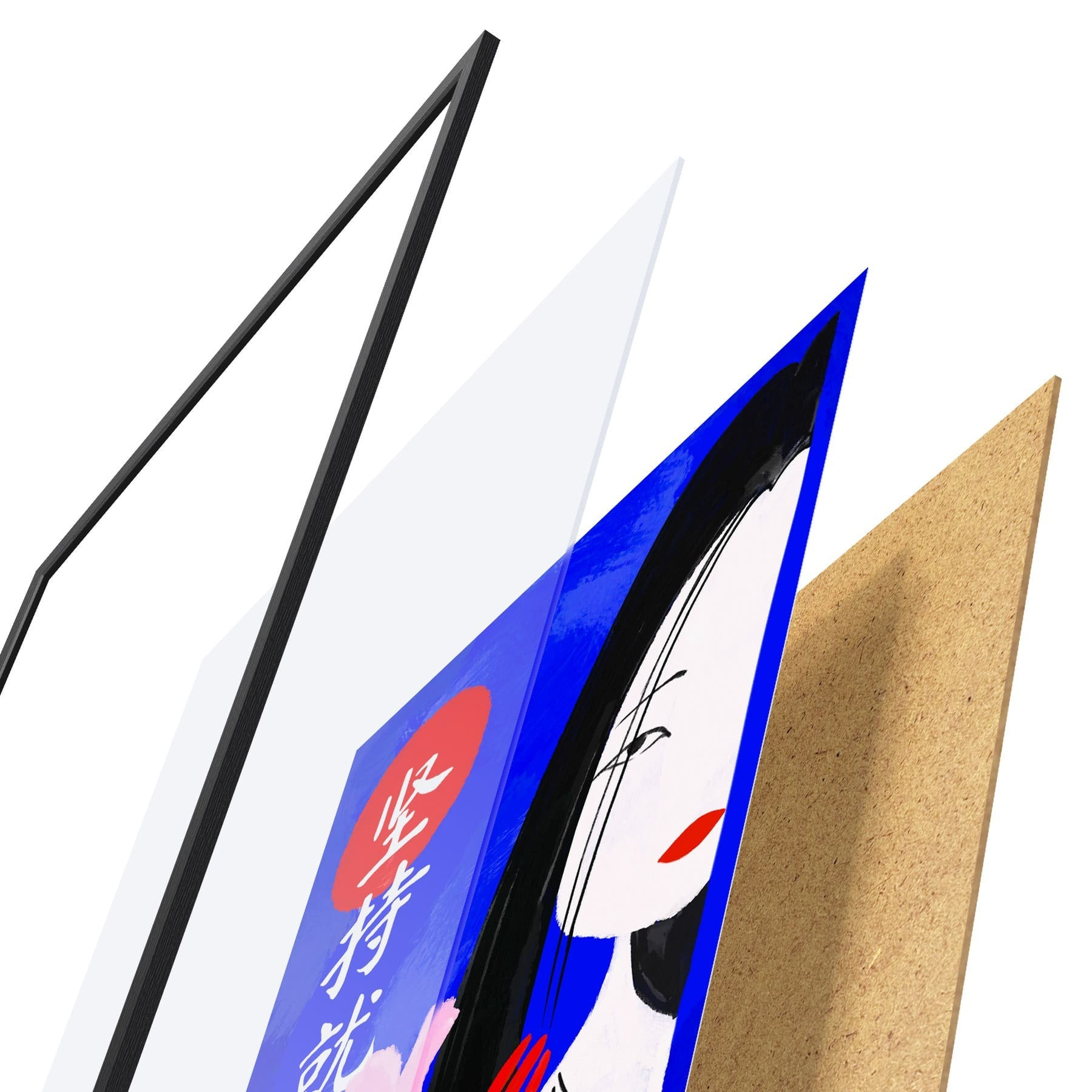 Plakát se skládá z rámu, plexiskla, tištěného obrazu a dřevotřískového podkladu. Díky úchytům na zadní straně lze plakát ihned zavěsit na zeď.