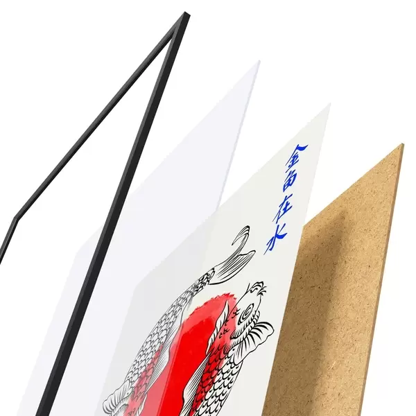 Plakát se skládá z rámu, plexiskla, tištěného obrazu a dřevotřískového podkladu. Díky úchytům na zadní straně lze plakát ihned zavěsit na zeď.