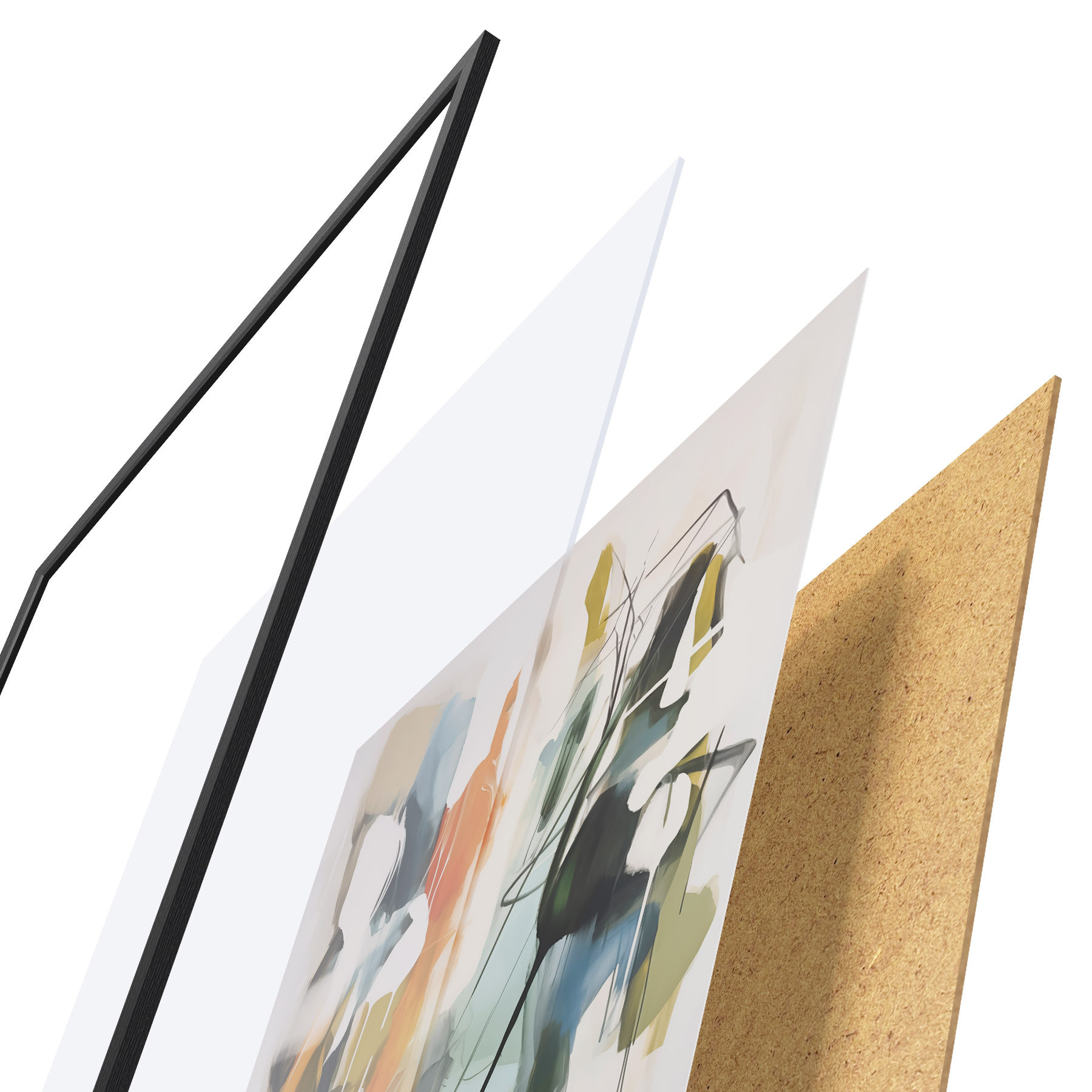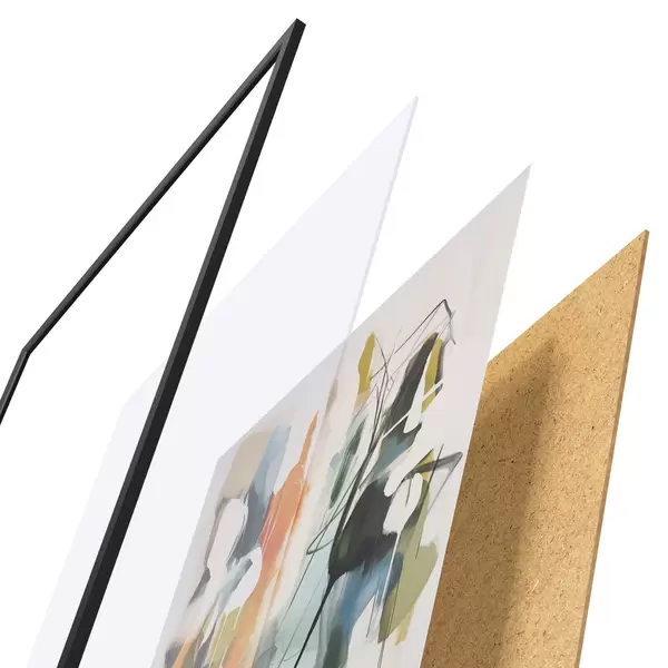 Plakát se skládá z rámu, plexiskla, tištěného obrazu a dřevotřískového podkladu. Díky úchytům na zadní straně lze plakát ihned zavěsit na zeď.