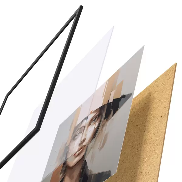 Plakát se skládá z rámu, plexiskla, tištěného obrazu a dřevotřískového podkladu. Díky úchytům na zadní straně lze plakát ihned zavěsit na zeď.