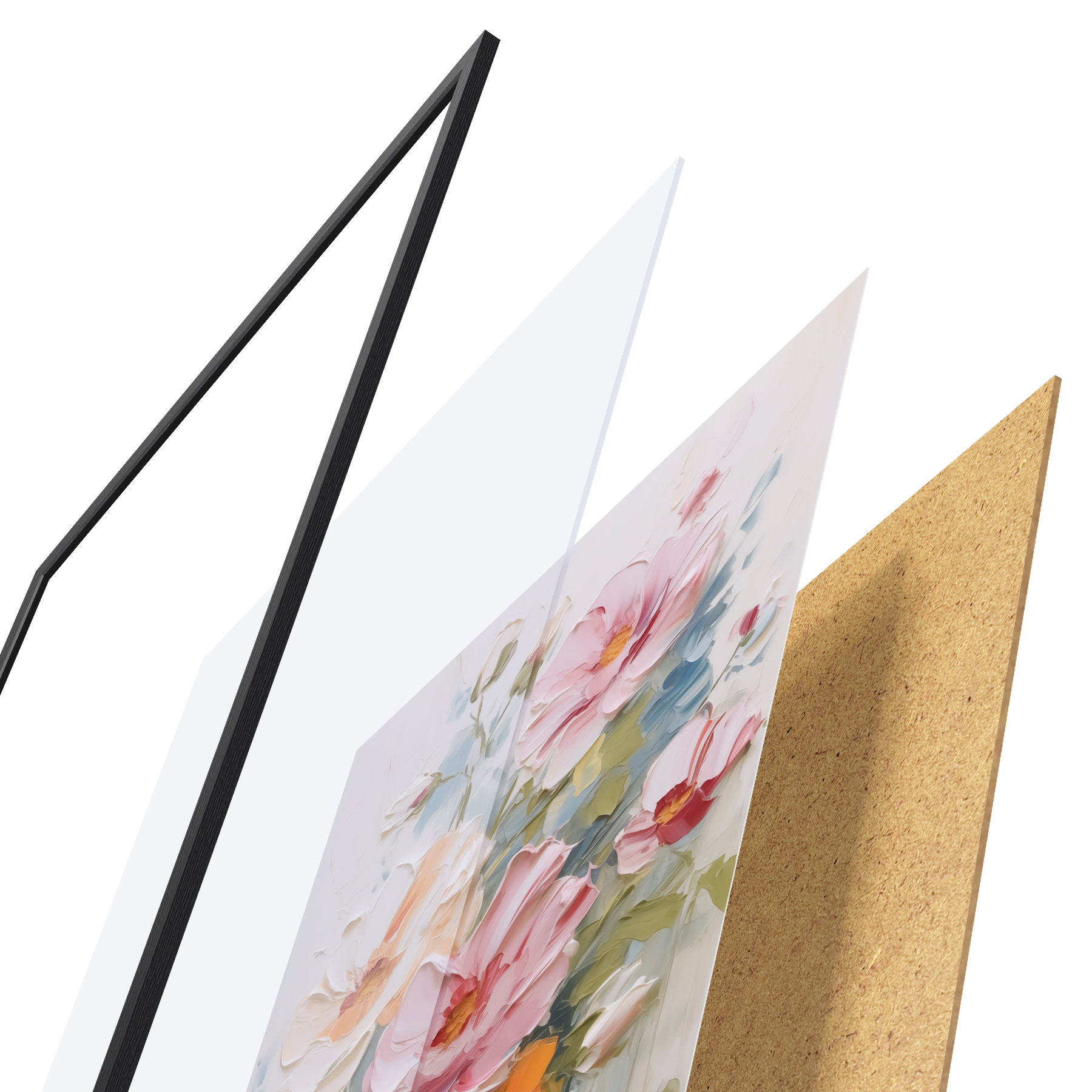 Plakát se skládá z rámu, plexiskla, tištěného obrazu a dřevotřískového podkladu. Díky úchytům na zadní straně lze plakát ihned zavěsit na zeď.