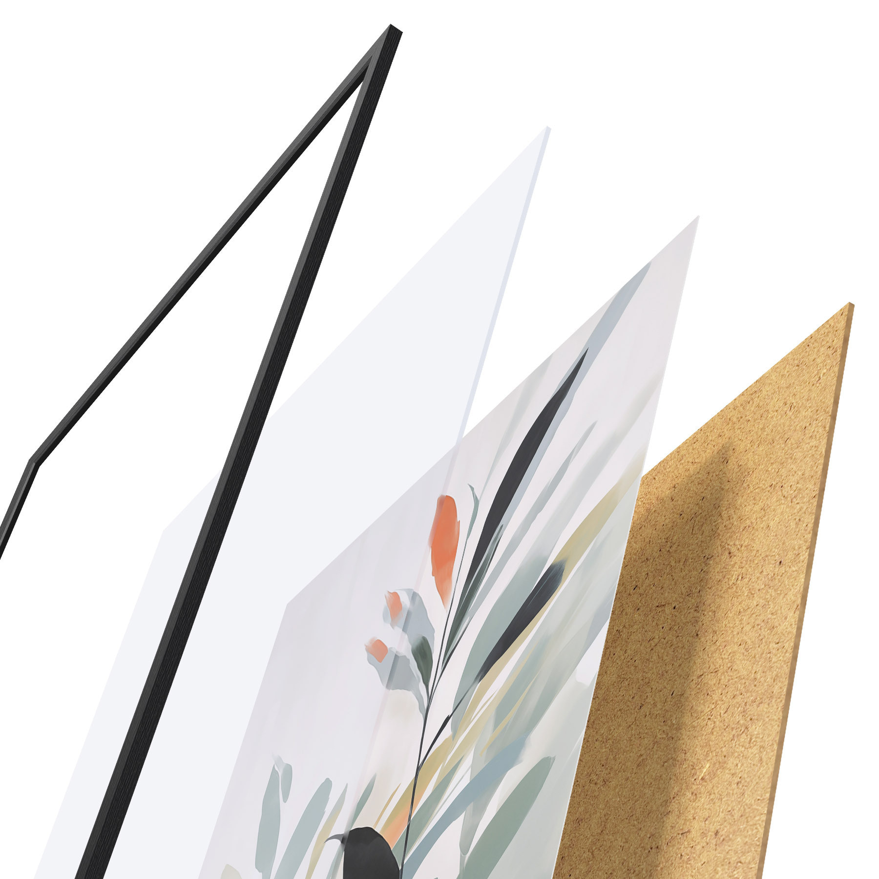 Plakát se skládá z rámu, plexiskla, tištěného obrazu a dřevotřískového podkladu. Díky úchytům na zadní straně lze plakát ihned zavěsit na zeď.