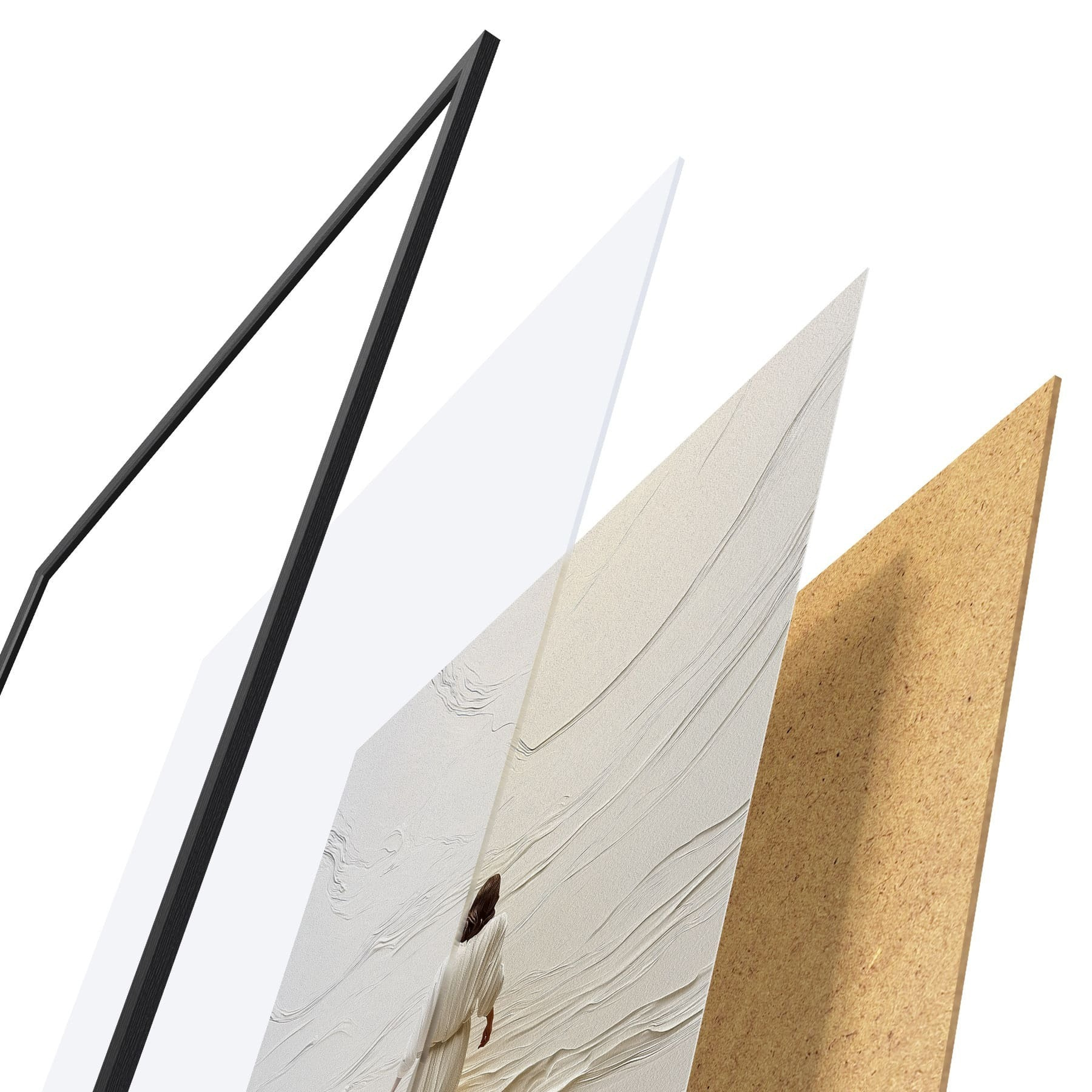 Plakát se skládá z rámu, plexiskla, tištěného obrazu a dřevotřískového podkladu. Díky úchytům na zadní straně lze plakát ihned zavěsit na zeď.