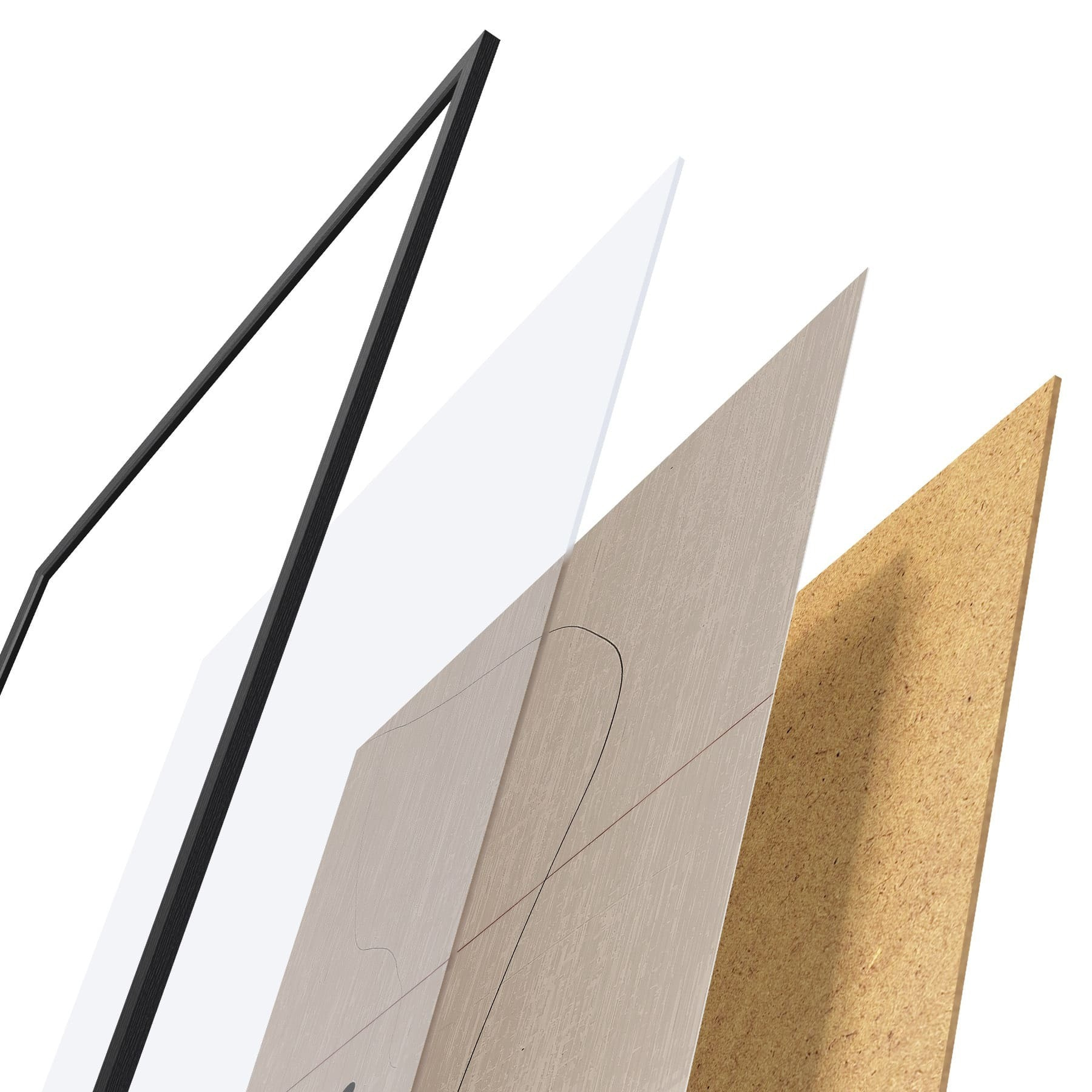 Plakát se skládá z rámu, plexiskla, tištěného obrazu a dřevotřískového podkladu. Díky úchytům na zadní straně lze plakát ihned zavěsit na zeď.