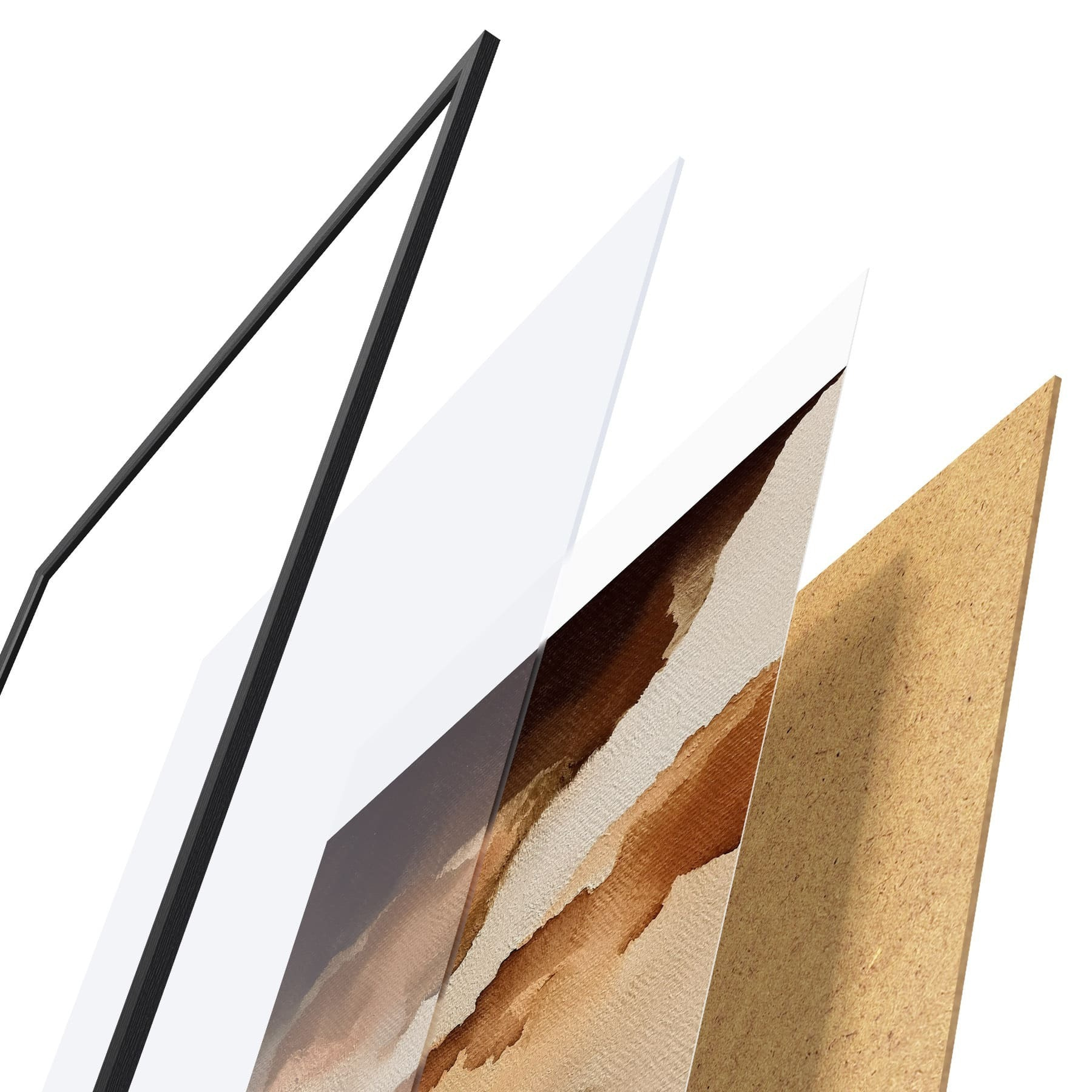 Plakát se skládá z rámu, plexiskla, tištěného obrazu a dřevotřískového podkladu. Díky úchytům na zadní straně lze plakát ihned zavěsit na zeď.
