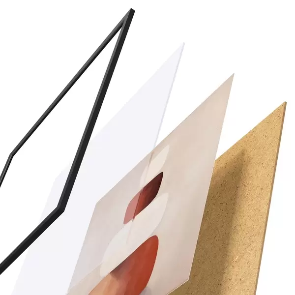 Plakát se skládá z rámu, plexiskla, tištěného obrazu a dřevotřískového podkladu. Díky úchytům na zadní straně lze plakát ihned zavěsit na zeď.