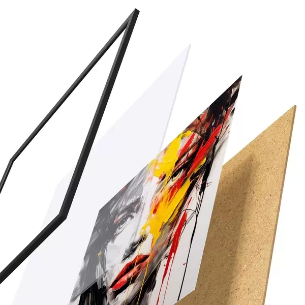 Plakát se skládá z rámu, plexiskla, tištěného obrazu a dřevotřískového podkladu. Díky úchytům na zadní straně lze plakát ihned zavěsit na zeď.