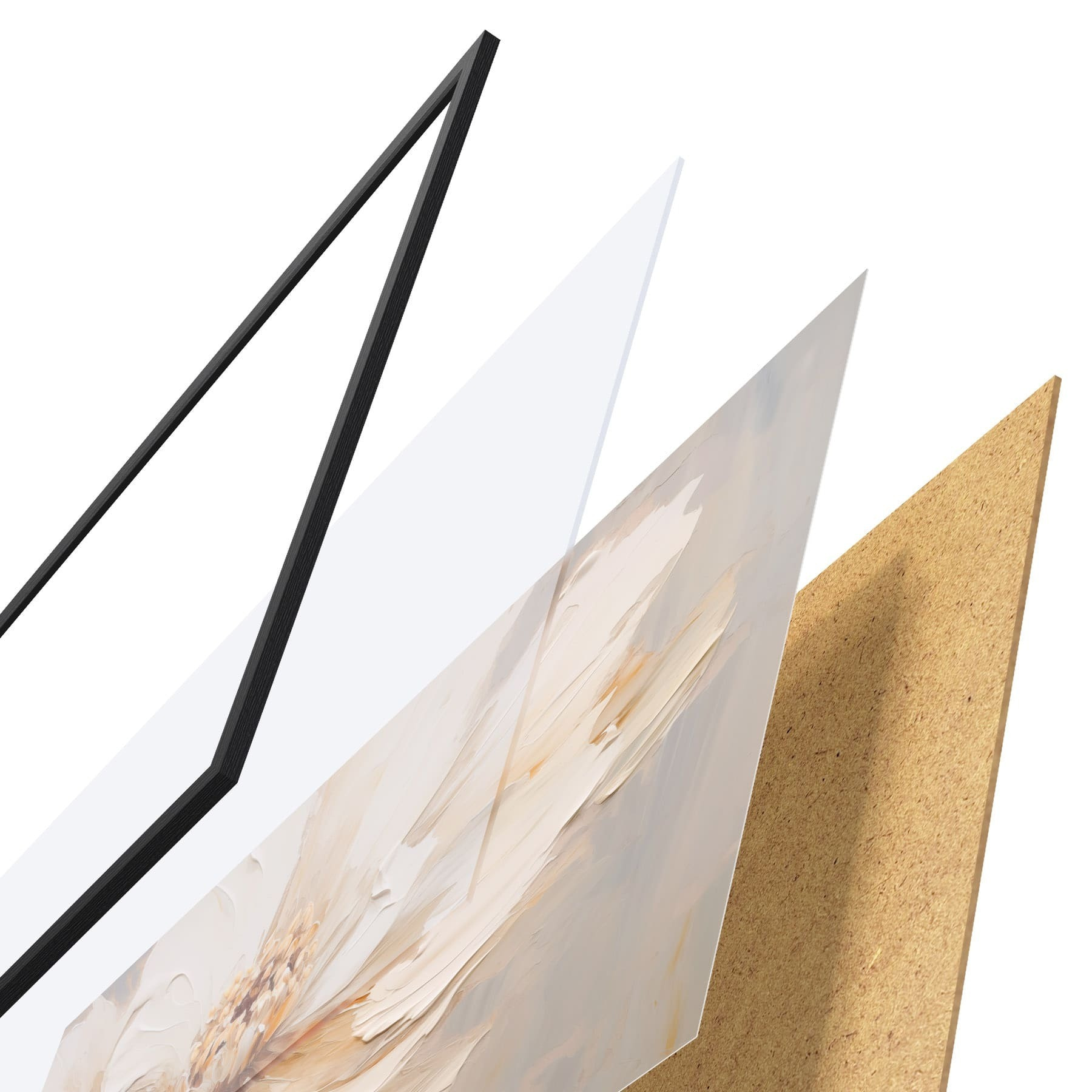 Plakát se skládá z rámu, plexiskla, tištěného obrazu a dřevotřískového podkladu. Díky úchytům na zadní straně lze plakát ihned zavěsit na zeď.