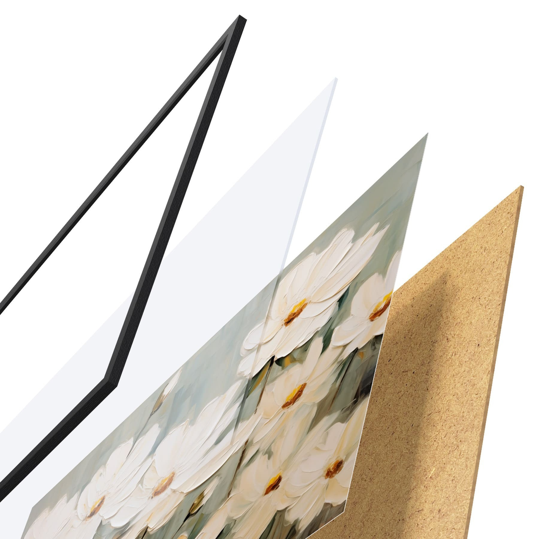 Plakát se skládá z rámu, plexiskla, tištěného obrazu a dřevotřískového podkladu. Díky úchytům na zadní straně lze plakát ihned zavěsit na zeď.