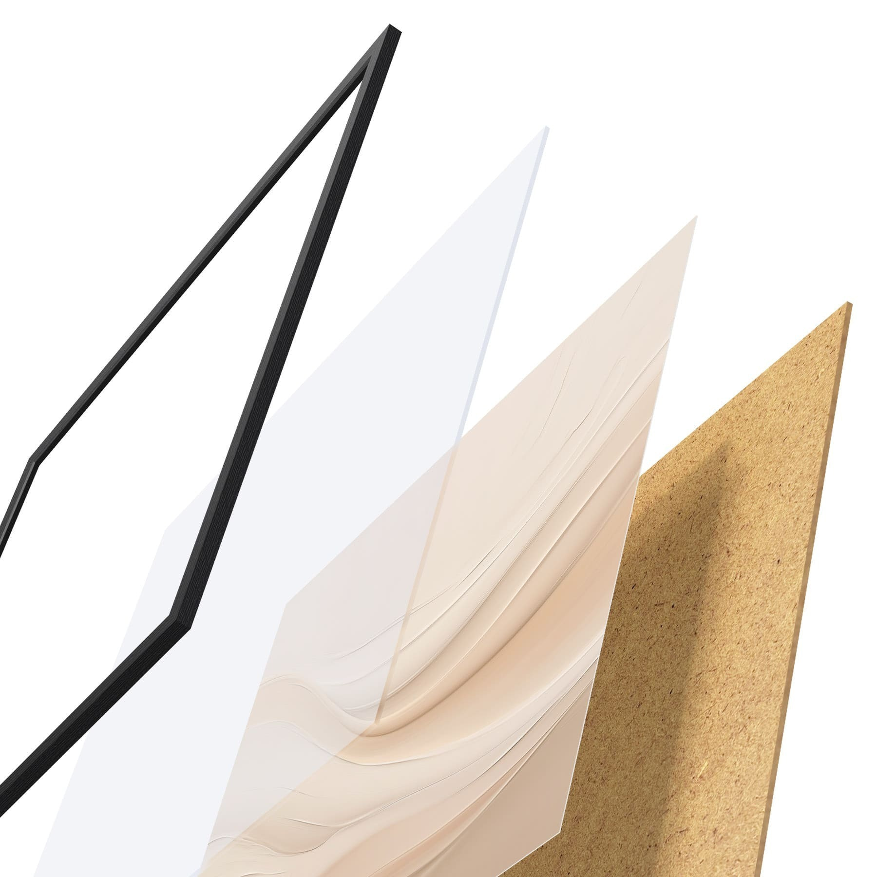 Plakát se skládá z rámu, plexiskla, tištěného obrazu a dřevotřískového podkladu. Díky úchytům na zadní straně lze plakát ihned zavěsit na zeď.