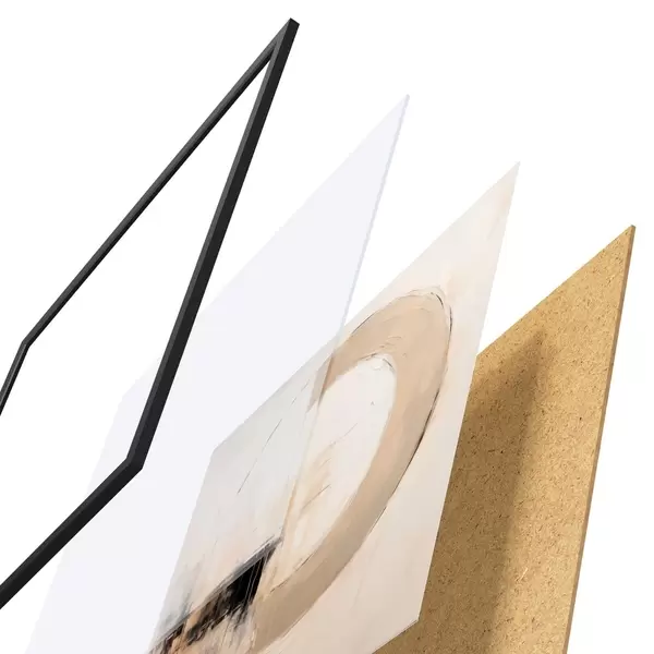 Plakát se skládá z rámu, plexiskla, tištěného obrazu a dřevotřískového podkladu. Díky úchytům na zadní straně lze plakát ihned zavěsit na zeď.