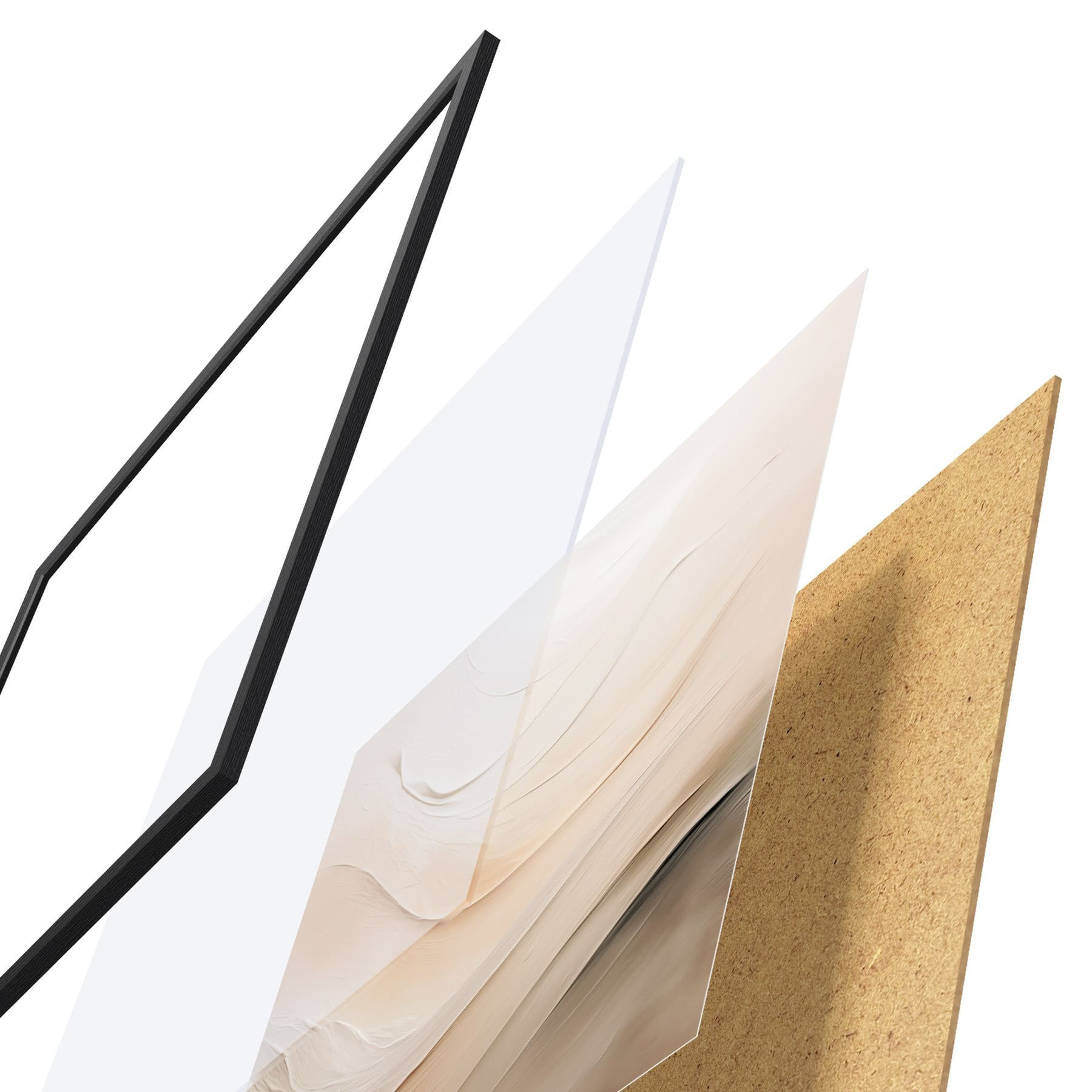 Plakát se skládá z rámu, plexiskla, tištěného obrazu a dřevotřískového podkladu. Díky úchytům na zadní straně lze plakát ihned zavěsit na zeď.