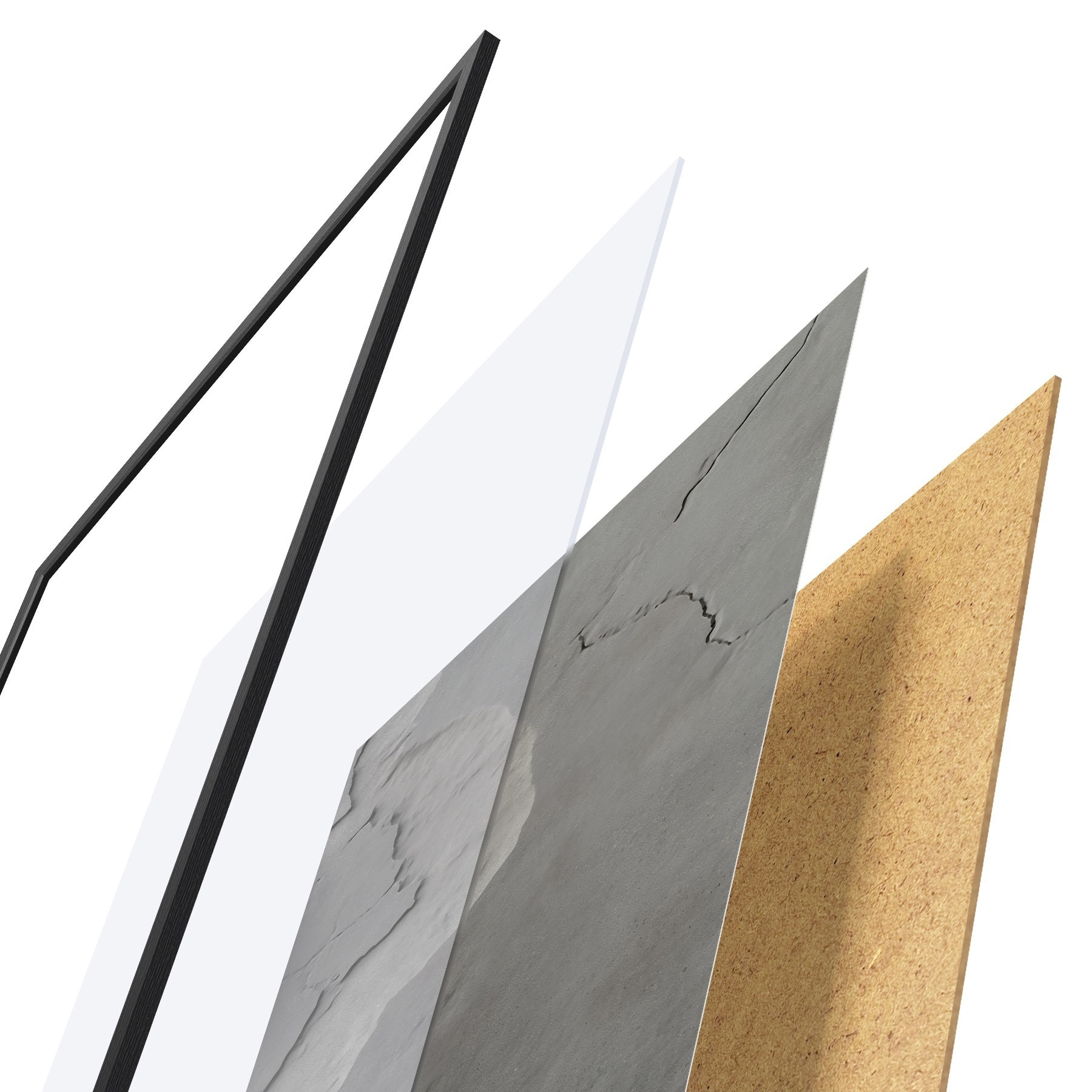 Plakát se skládá z rámu, plexiskla, tištěného obrazu a dřevotřískového podkladu. Díky úchytům na zadní straně lze plakát ihned zavěsit na zeď.