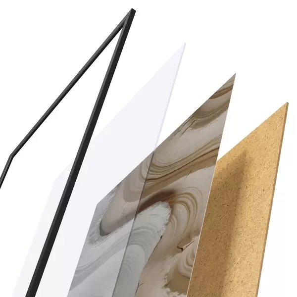 Plakát se skládá z rámu, plexiskla, tištěného obrazu a dřevotřískového podkladu. Díky úchytům na zadní straně lze plakát ihned zavěsit na zeď.