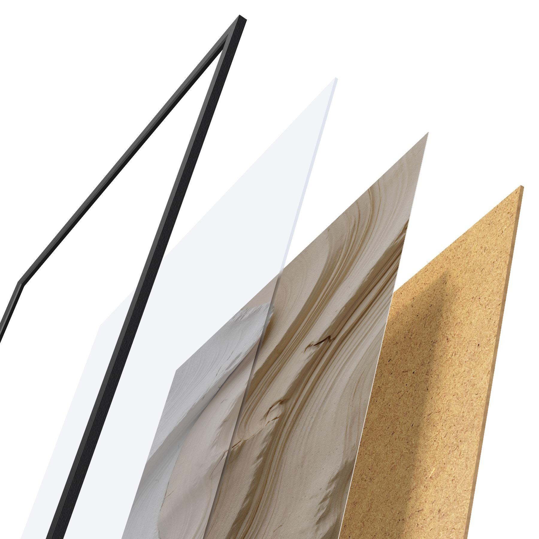 Plakát se skládá z rámu, plexiskla, tištěného obrazu a dřevotřískového podkladu. Díky úchytům na zadní straně lze plakát ihned zavěsit na zeď.