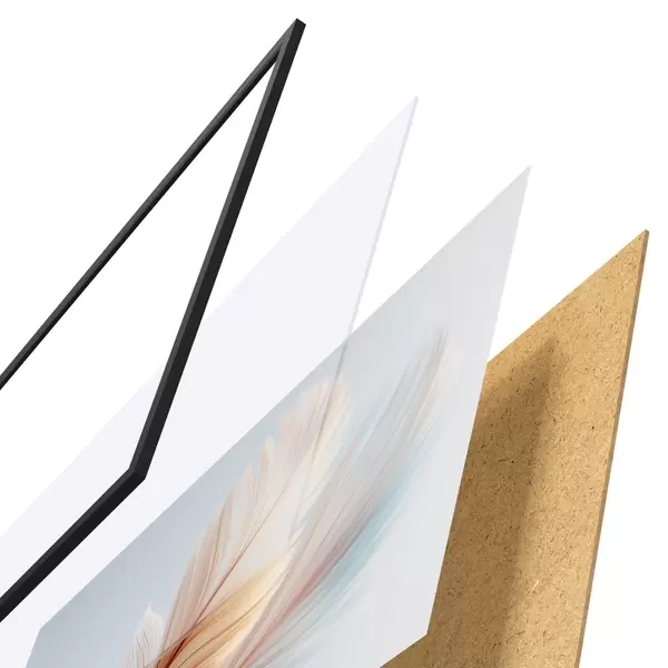 Plakát se skládá z rámu, plexiskla, tištěného obrazu a dřevotřískového podkladu. Díky úchytům na zadní straně lze plakát ihned zavěsit na zeď.