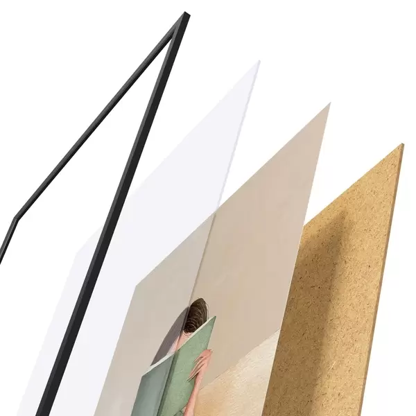 Plakát se skládá z rámu, plexiskla, tištěného obrazu a dřevotřískového podkladu. Díky úchytům na zadní straně lze plakát ihned zavěsit na zeď.