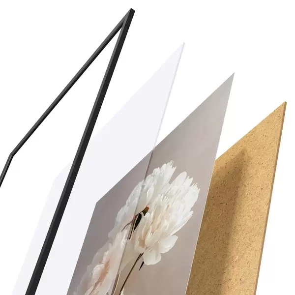 Plakát se skládá z rámu, plexiskla, tištěného obrazu a dřevotřískového podkladu. Díky úchytům na zadní straně lze plakát ihned zavěsit na zeď.