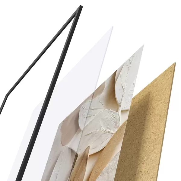 Plakát se skládá z rámu, plexiskla, tištěného obrazu a dřevotřískového podkladu. Díky úchytům na zadní straně lze plakát ihned zavěsit na zeď.