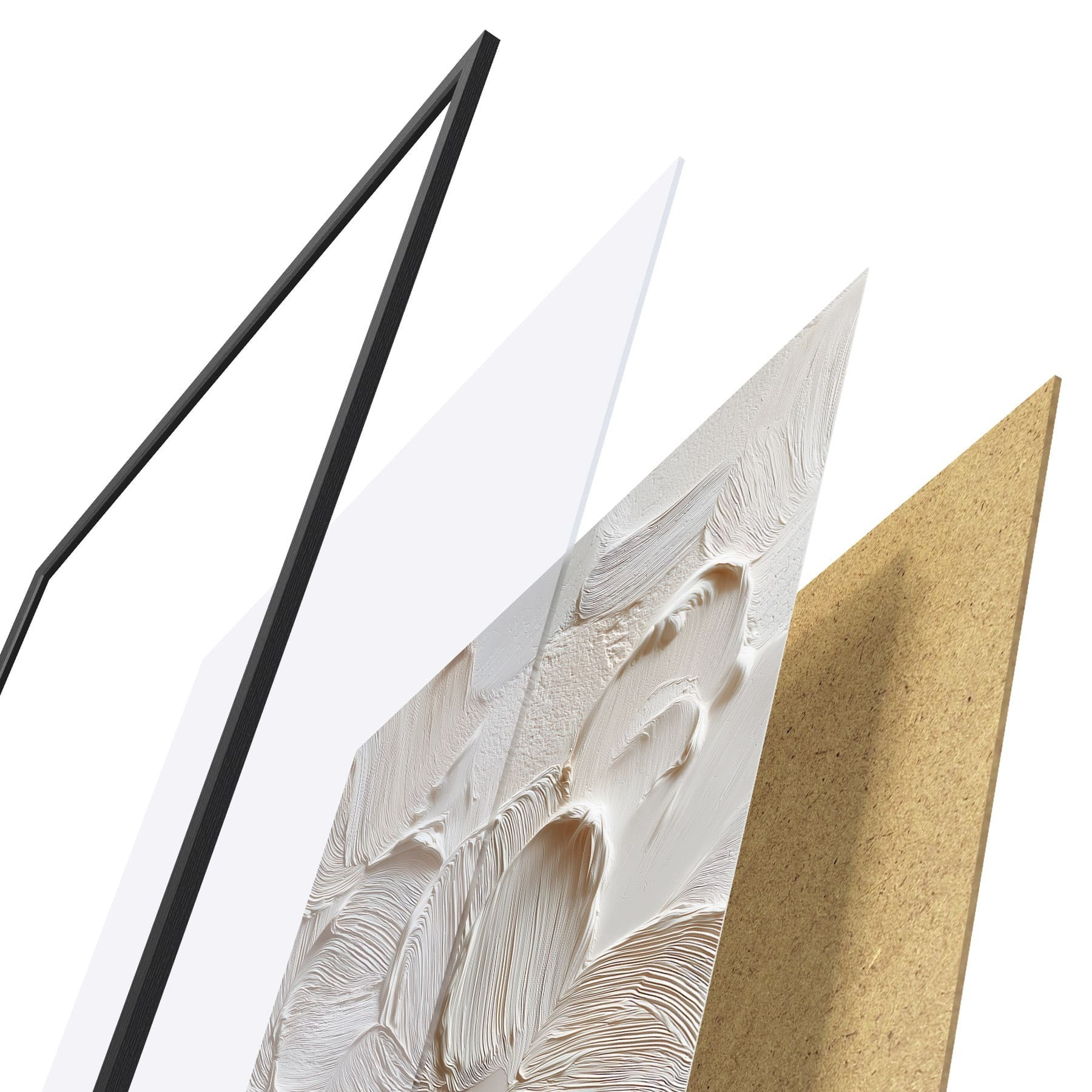 Plakát se skládá z rámu, plexiskla, tištěného obrazu a dřevotřískového podkladu. Díky úchytům na zadní straně lze plakát ihned zavěsit na zeď.