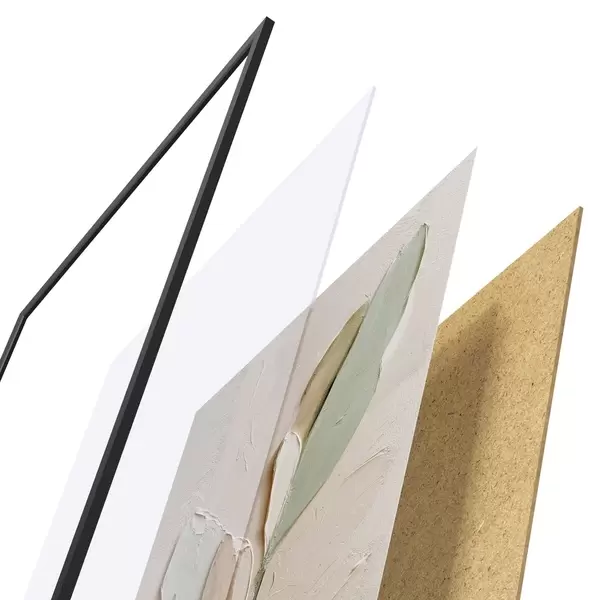 Plakát se skládá z rámu, plexiskla, tištěného obrazu a dřevotřískového podkladu. Díky úchytům na zadní straně lze plakát ihned zavěsit na zeď.