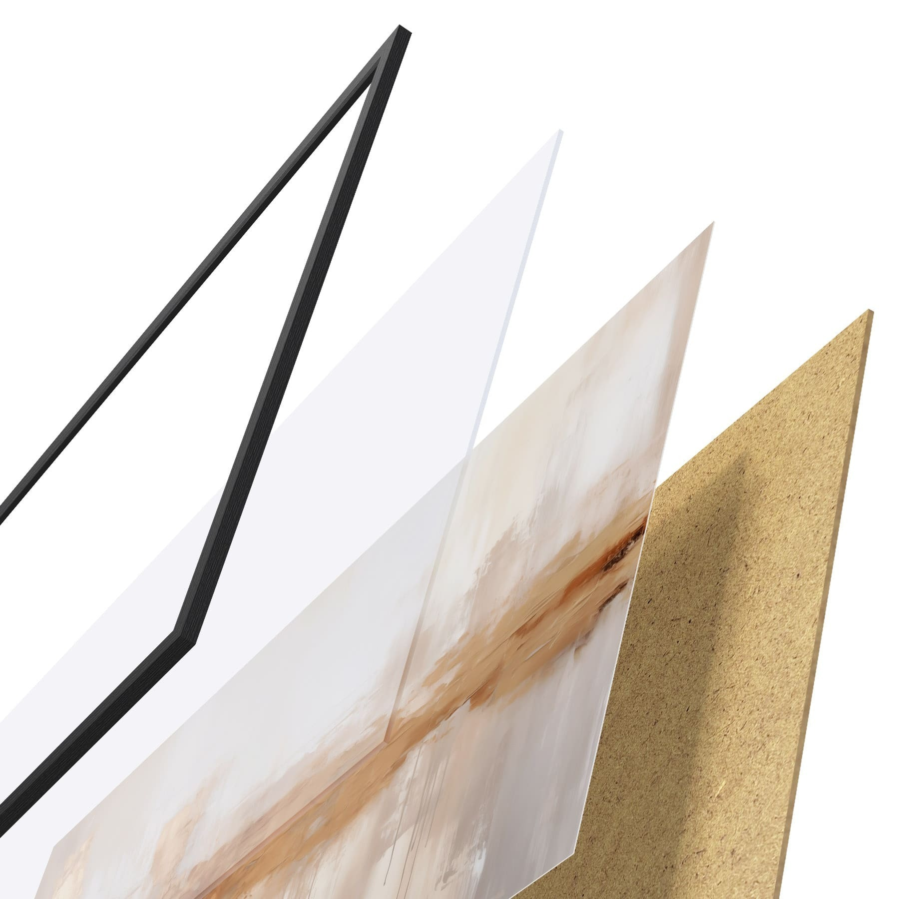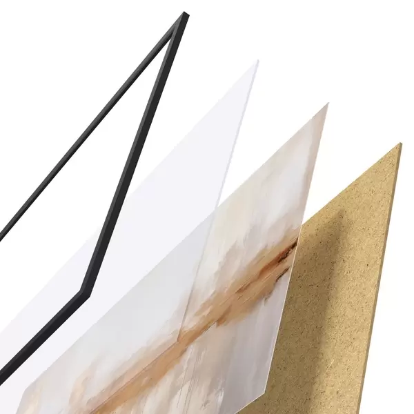 Plakát se skládá z rámu, plexiskla, tištěného obrazu a dřevotřískového podkladu. Díky úchytům na zadní straně lze plakát ihned zavěsit na zeď.
