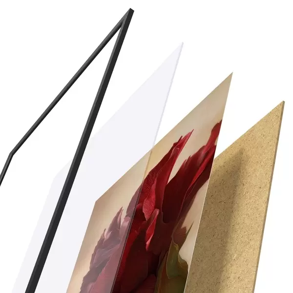 Plakát se skládá z rámu, plexiskla, tištěného obrazu a dřevotřískového podkladu. Díky úchytům na zadní straně lze plakát ihned zavěsit na zeď.