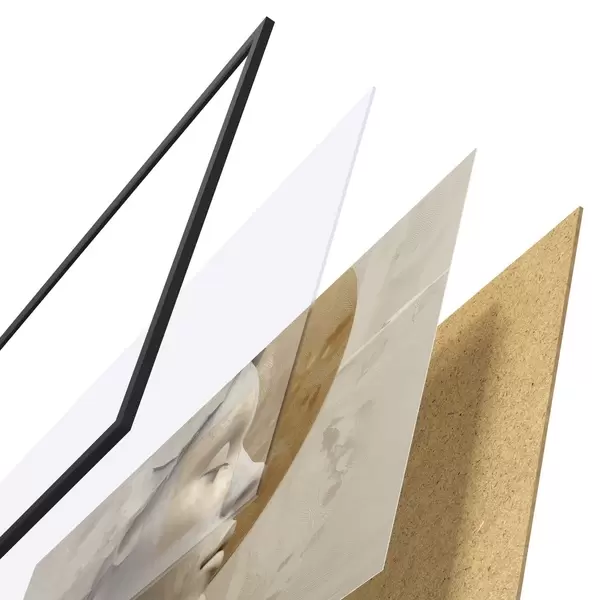 Plakát se skládá z rámu, plexiskla, tištěného obrazu a dřevotřískového podkladu. Díky úchytům na zadní straně lze plakát ihned zavěsit na zeď.