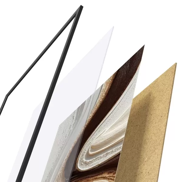 Plakát se skládá z rámu, plexiskla, tištěného obrazu a dřevotřískového podkladu. Díky úchytům na zadní straně lze plakát ihned zavěsit na zeď.