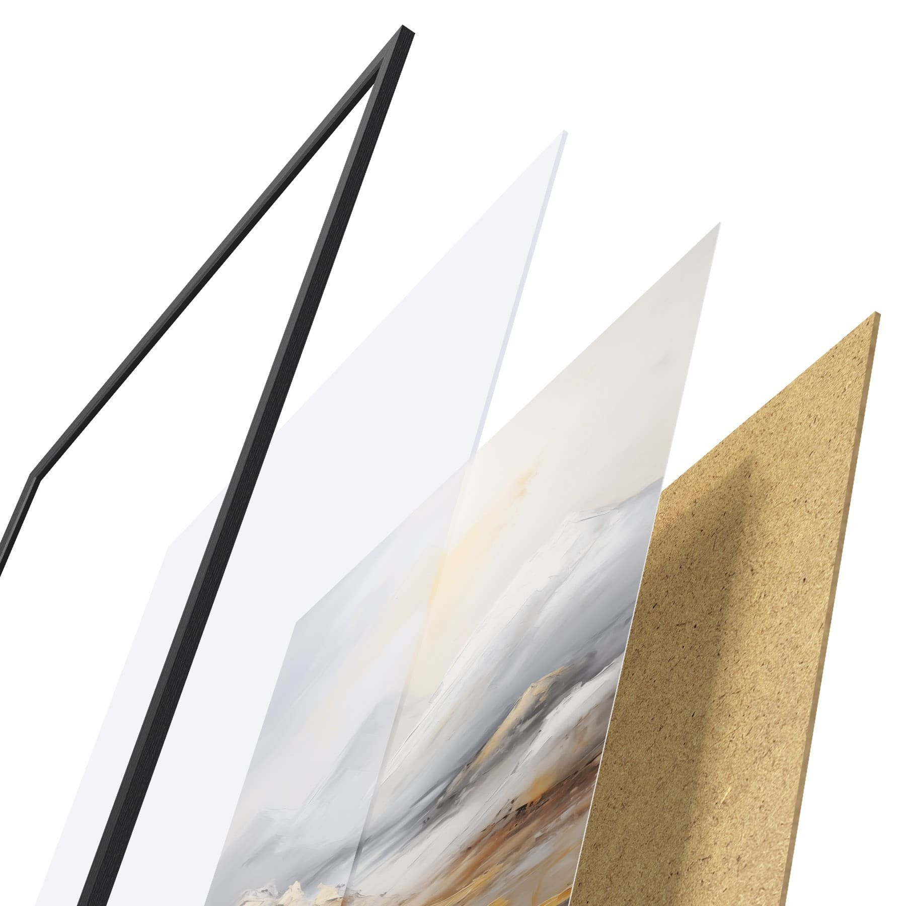 Plakát se skládá z rámu, plexiskla, tištěného obrazu a dřevotřískového podkladu. Díky úchytům na zadní straně lze plakát ihned zavěsit na zeď.