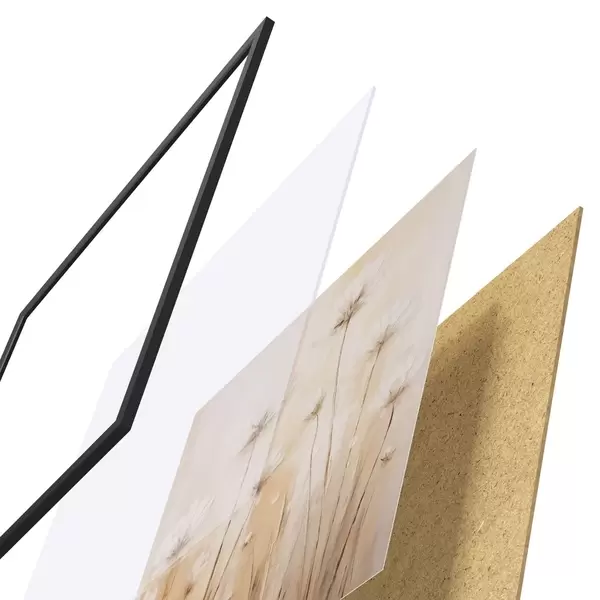 Plakát se skládá z rámu, plexiskla, tištěného obrazu a dřevotřískového podkladu. Díky úchytům na zadní straně lze plakát ihned zavěsit na zeď.