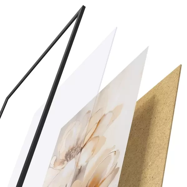 Plakát se skládá z rámu, plexiskla, tištěného obrazu a dřevotřískového podkladu. Díky úchytům na zadní straně lze plakát ihned zavěsit na zeď.