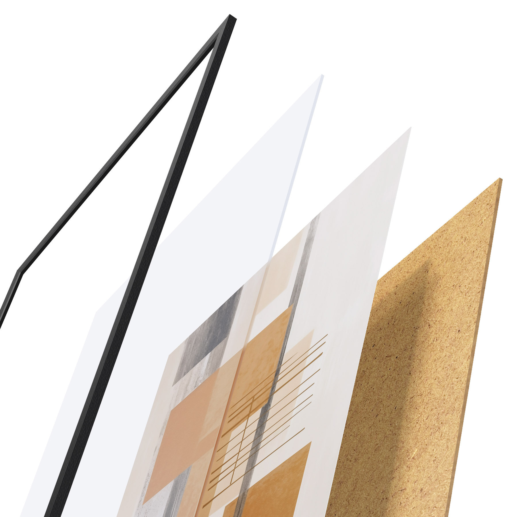 Plakát se skládá z rámu, plexiskla, tištěného obrazu a dřevotřískového podkladu. Díky úchytům na zadní straně lze plakát ihned zavěsit na zeď.