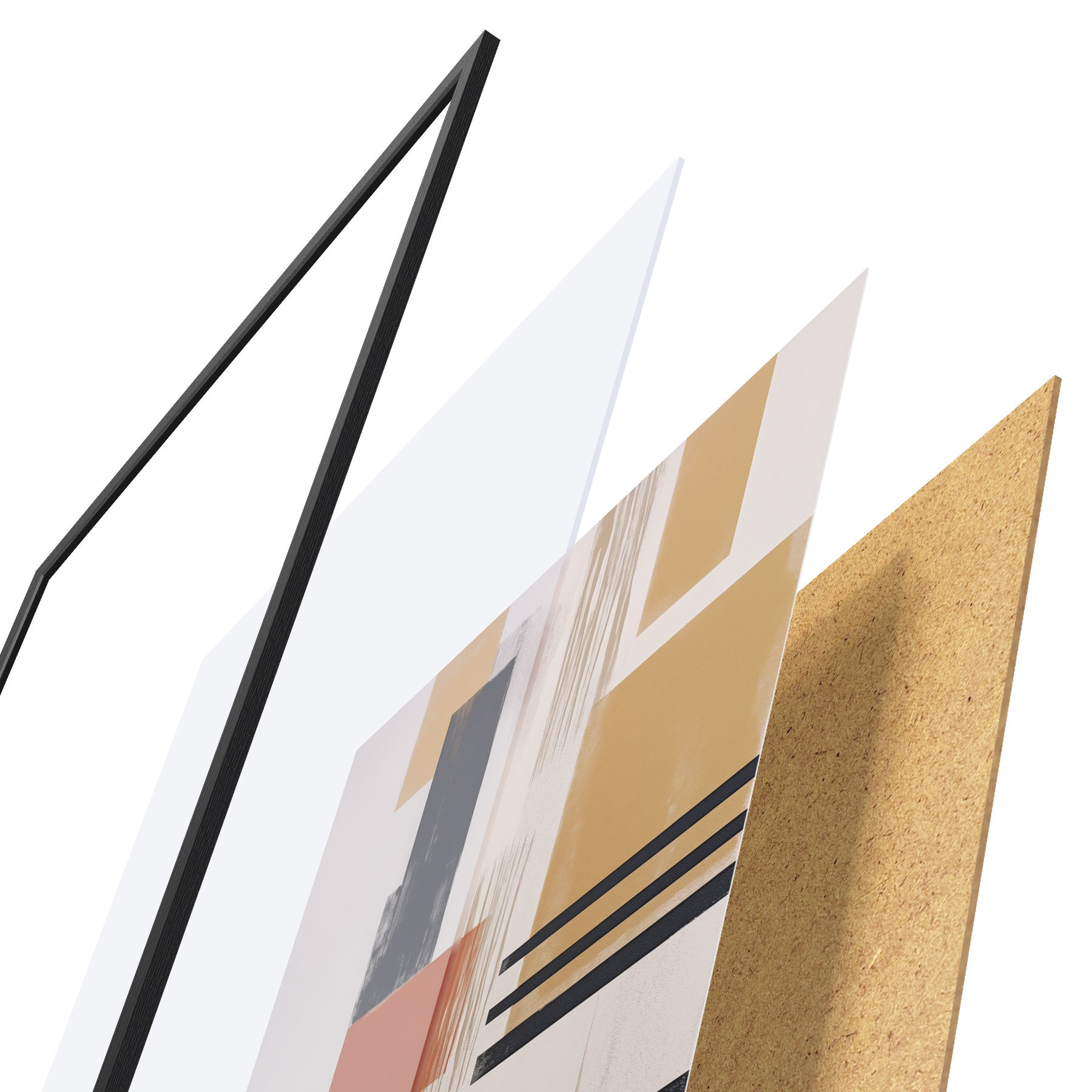 Plakát se skládá z rámu, plexiskla, tištěného obrazu a dřevotřískového podkladu. Díky úchytům na zadní straně lze plakát ihned zavěsit na zeď.