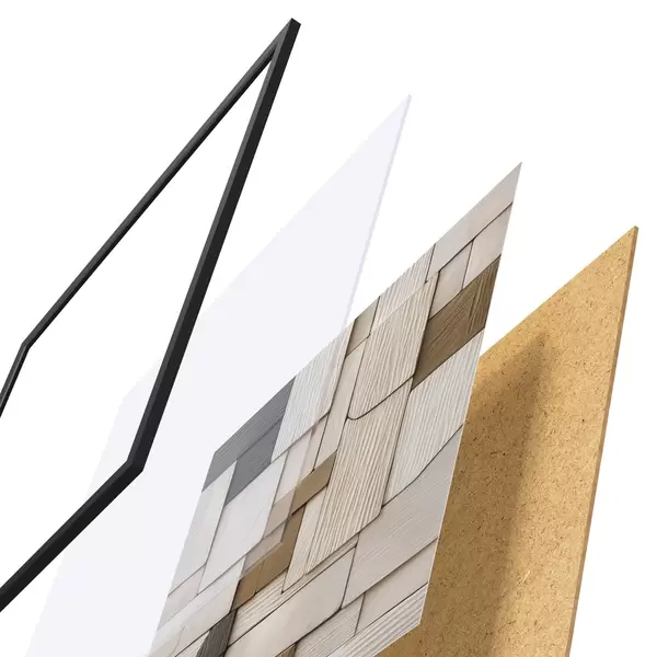 Plakát se skládá z rámu, plexiskla, tištěného obrazu a dřevotřískového podkladu. Díky úchytům na zadní straně lze plakát ihned zavěsit na zeď.