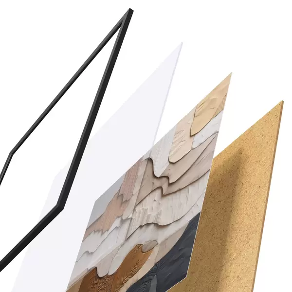 Plakát se skládá z rámu, plexiskla, tištěného obrazu a dřevotřískového podkladu. Díky úchytům na zadní straně lze plakát ihned zavěsit na zeď.