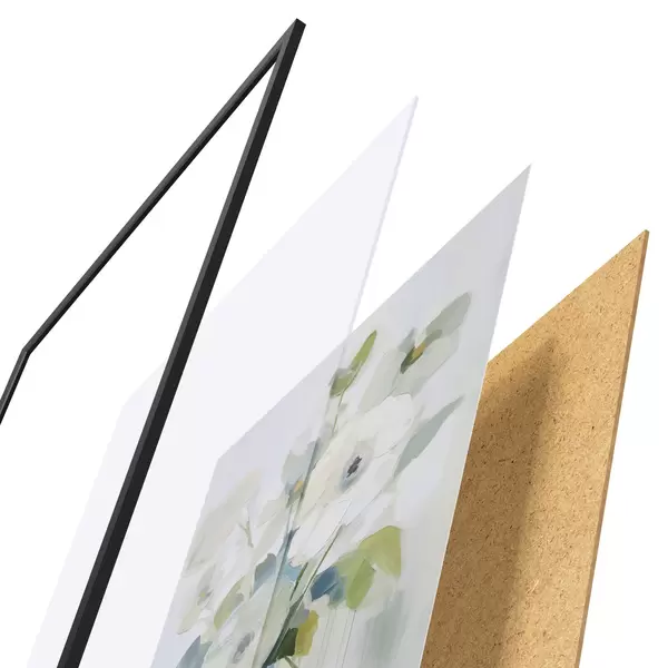 Plakát se skládá z rámu, plexiskla, tištěného obrazu a dřevotřískového podkladu. Díky úchytům na zadní straně lze plakát ihned zavěsit na zeď.