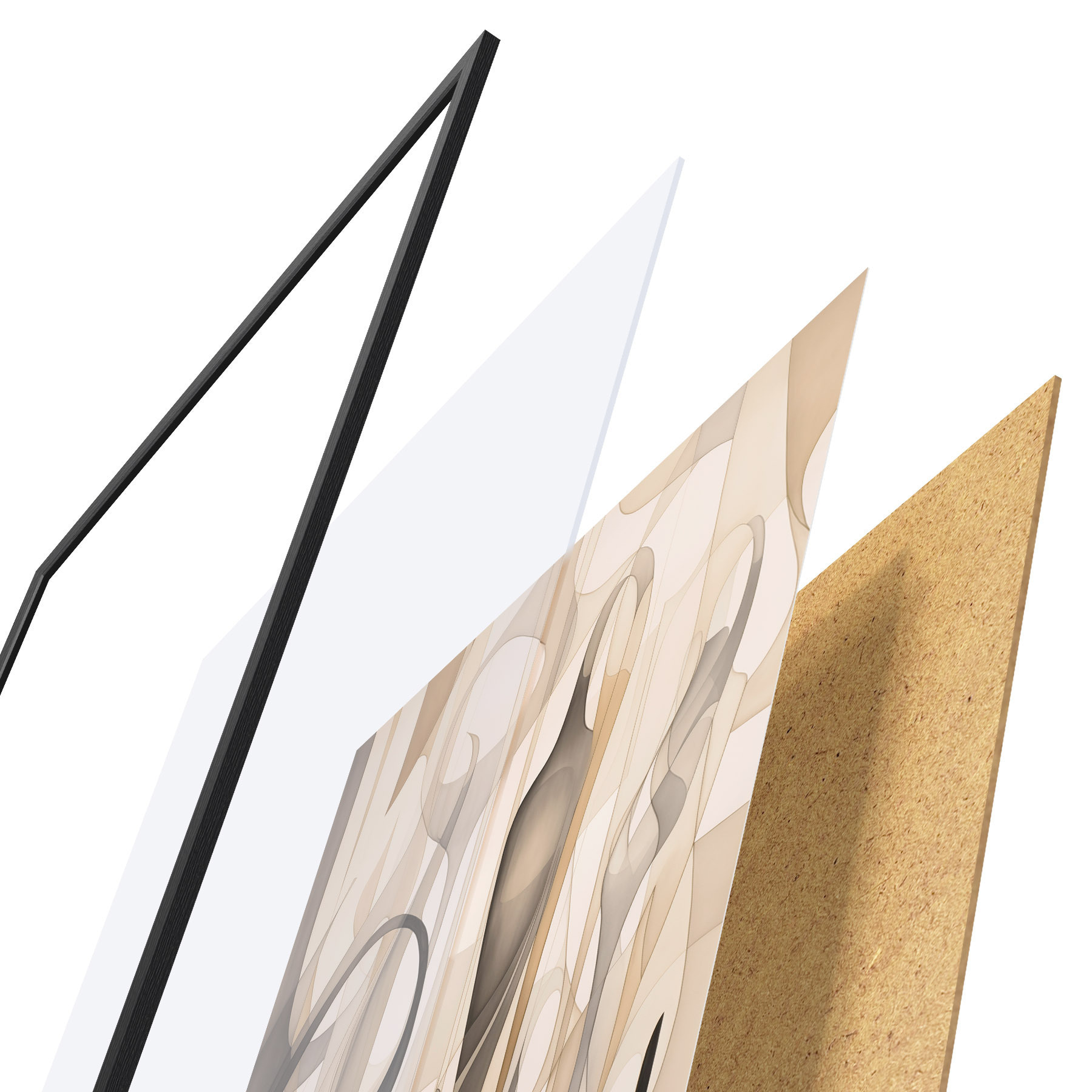 Plakát se skládá z rámu, plexiskla, tištěného obrazu a dřevotřískového podkladu. Díky úchytům na zadní straně lze plakát ihned zavěsit na zeď.