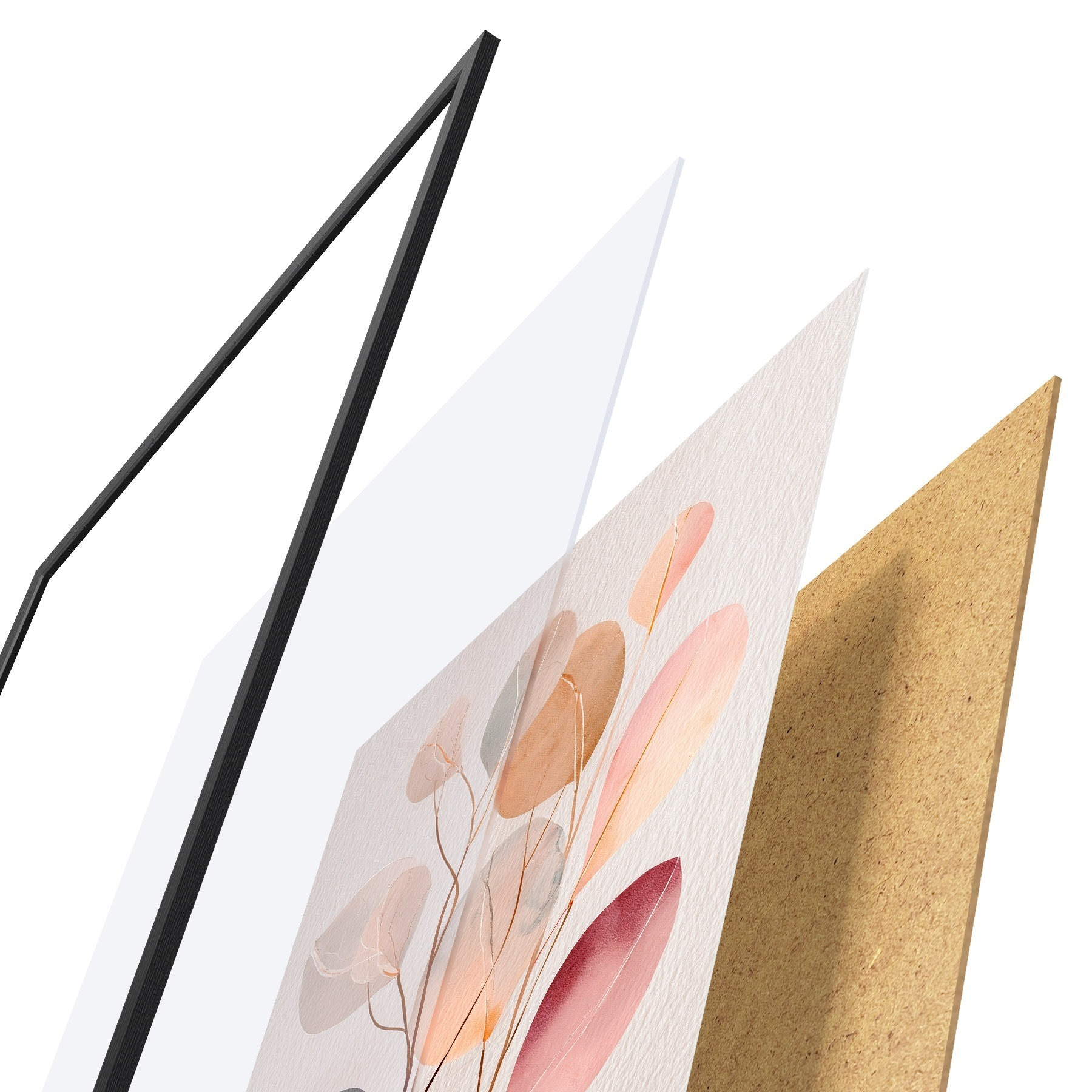 Plakát se skládá z rámu, plexiskla, tištěného obrazu a dřevotřískového podkladu. Díky úchytům na zadní straně lze plakát ihned zavěsit na zeď.