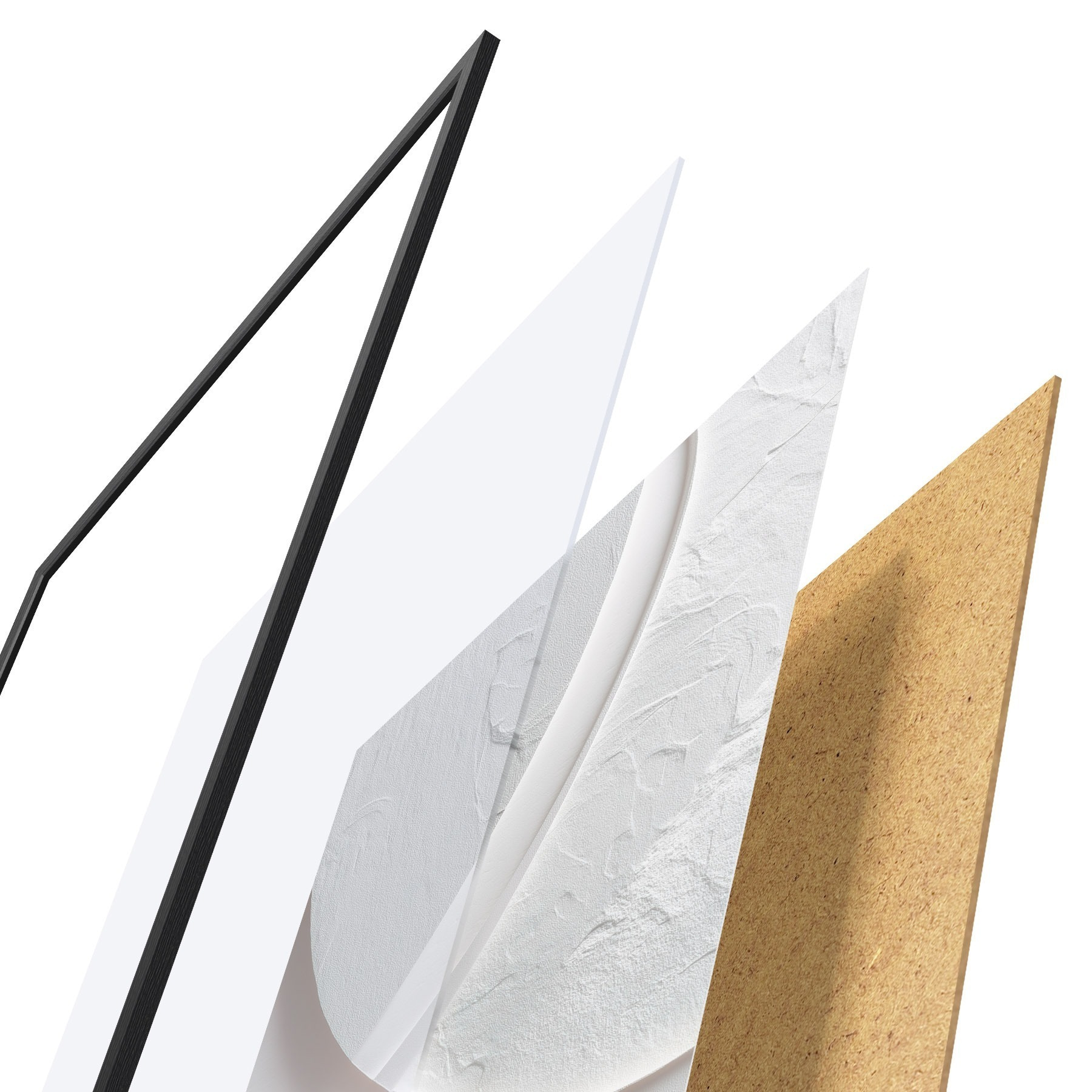 Plakát se skládá z rámu, plexiskla, tištěného obrazu a dřevotřískového podkladu. Díky úchytům na zadní straně lze plakát ihned zavěsit na zeď.
