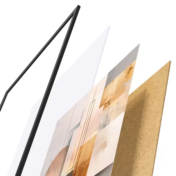 Plakát se skládá z rámu, plexiskla, tištěného obrazu a dřevotřískového podkladu. Díky úchytům na zadní straně lze plakát ihned zavěsit na zeď.