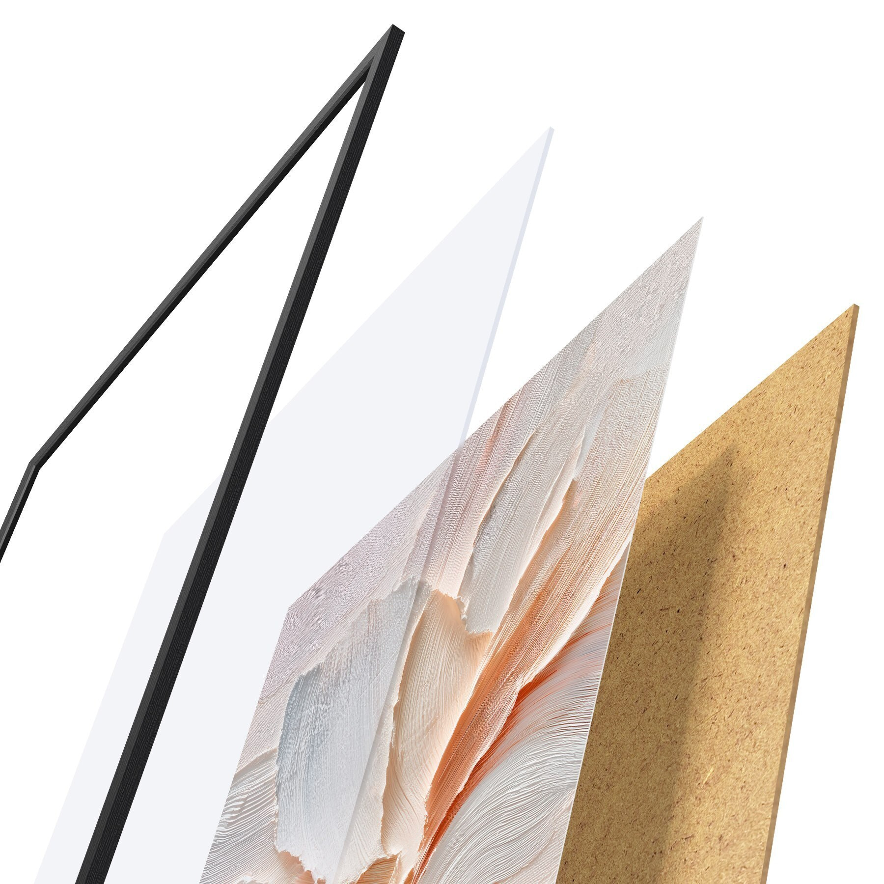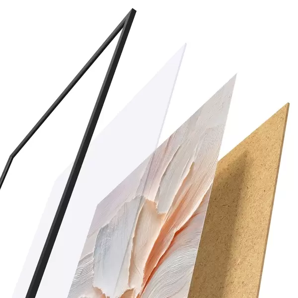 Plakát se skládá z rámu, plexiskla, tištěného obrazu a dřevotřískového podkladu. Díky úchytům na zadní straně lze plakát ihned zavěsit na zeď.