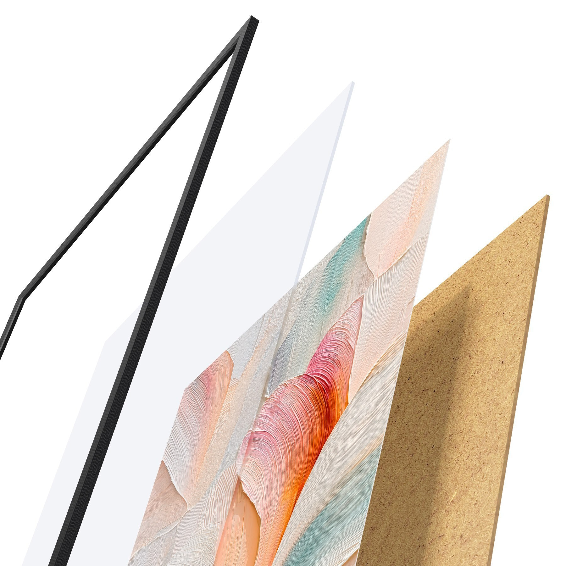Plakát se skládá z rámu, plexiskla, tištěného obrazu a dřevotřískového podkladu. Díky úchytům na zadní straně lze plakát ihned zavěsit na zeď.
