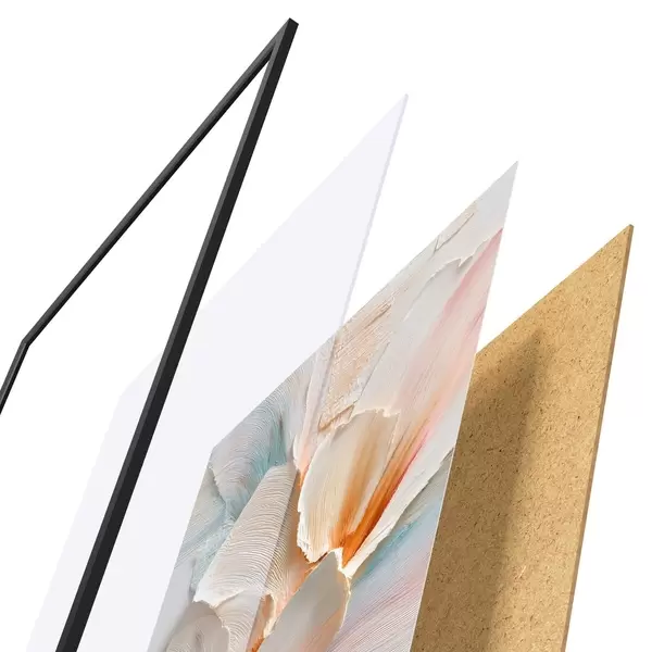 Plakát se skládá z rámu, plexiskla, tištěného obrazu a dřevotřískového podkladu. Díky úchytům na zadní straně lze plakát ihned zavěsit na zeď.