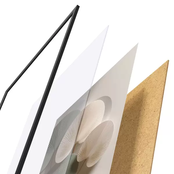 Plakát se skládá z rámu, plexiskla, tištěného obrazu a dřevotřískového podkladu. Díky úchytům na zadní straně lze plakát ihned zavěsit na zeď.
