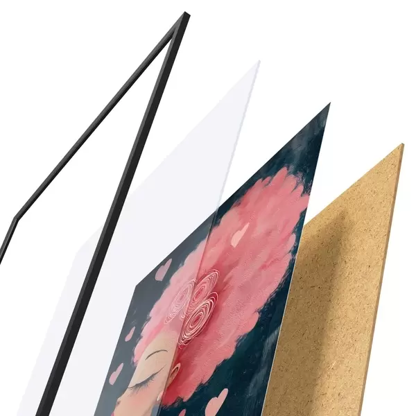 Plakát se skládá z rámu, plexiskla, tištěného obrazu a dřevotřískového podkladu. Díky úchytům na zadní straně lze plakát ihned zavěsit na zeď.