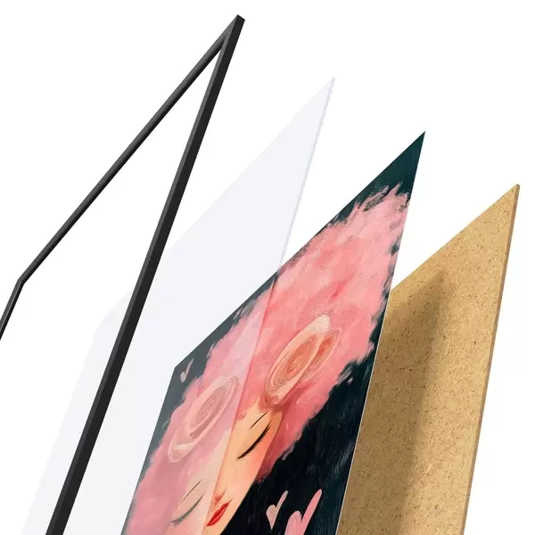 Plakát se skládá z rámu, plexiskla, tištěného obrazu a dřevotřískového podkladu. Díky úchytům na zadní straně lze plakát ihned zavěsit na zeď.