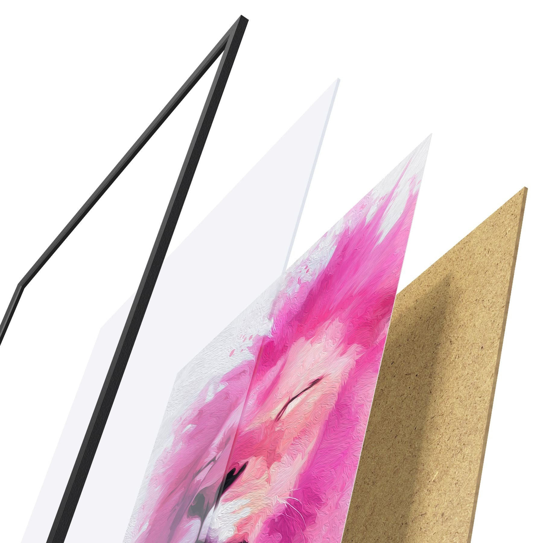 Plakát se skládá z rámu, plexiskla, tištěného obrazu a dřevotřískového podkladu. Díky úchytům na zadní straně lze plakát ihned zavěsit na zeď.