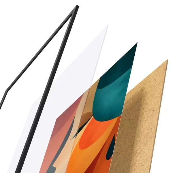 Plakát se skládá z rámu, plexiskla, tištěného obrazu a dřevotřískového podkladu. Díky úchytům na zadní straně lze plakát ihned zavěsit na zeď.