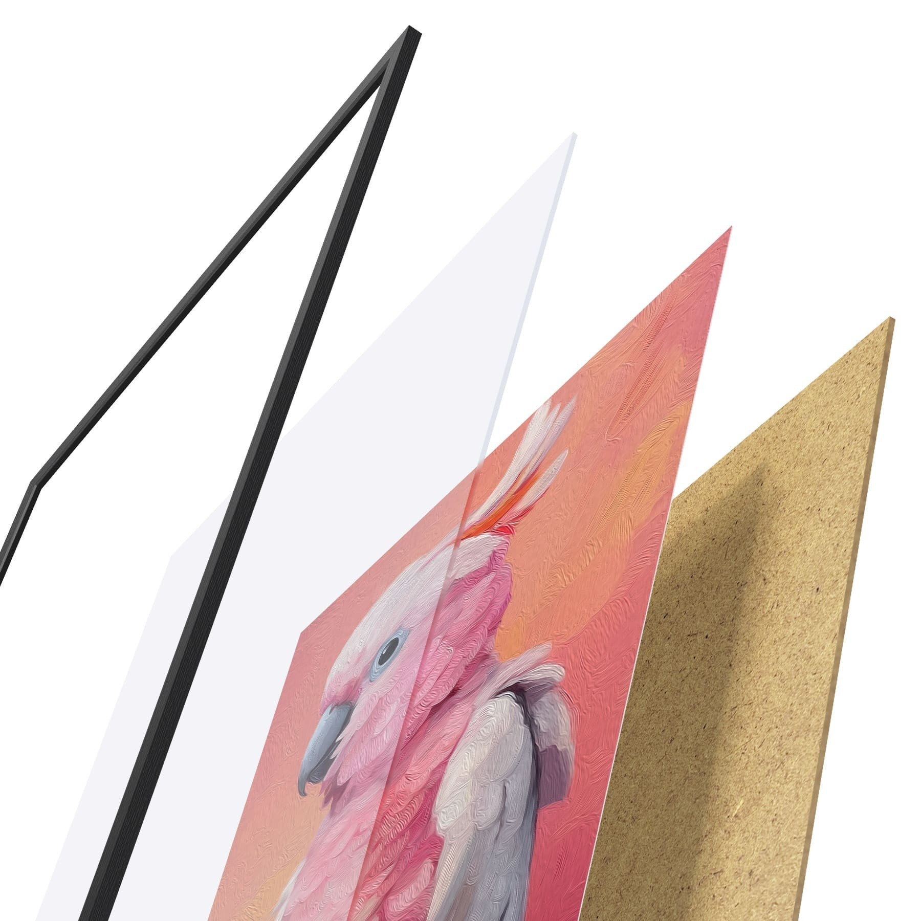 Plakát se skládá z rámu, plexiskla, tištěného obrazu a dřevotřískového podkladu. Díky úchytům na zadní straně lze plakát ihned zavěsit na zeď.